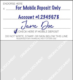 - Print "For Mobile Deposit Only." Do not use abbreviation, cursive, or all caps.